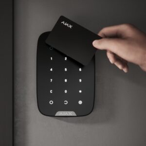 Ajax Pass vám umožňuje spravovat zabezpečení objektu bez účtu, přístupu k aplikaci Ajax nebo znalosti hesla – stačí aktivovat kompatibilní klávesnici a přiložit zařízení ke čtečce. Bezpečnostní systém nebo určitá skupina bude aktivována nebo deaktivována.