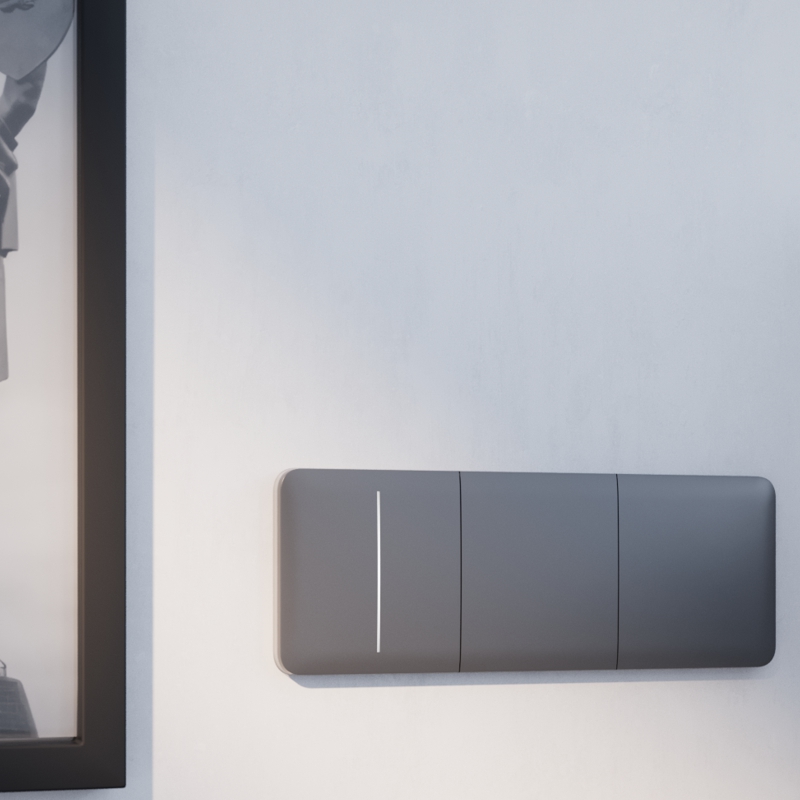 Panel je vždy nutné kombinovat s Ajax relé a Ajax rámečkem dle Vašeho výběru – dohromady vytváří inteligentní nástěnný vypínač – LightSwitch.
