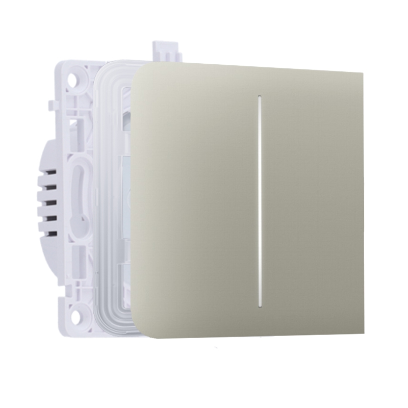 Kombinovaný vypínač se skládá ze 2, 3, 4 nebo 5 relé, dotykových tlačítek a rámečku s odpovídajícím počtem otvorů. Místo vypínače lze použít i inteligentní zásuvku Ajax