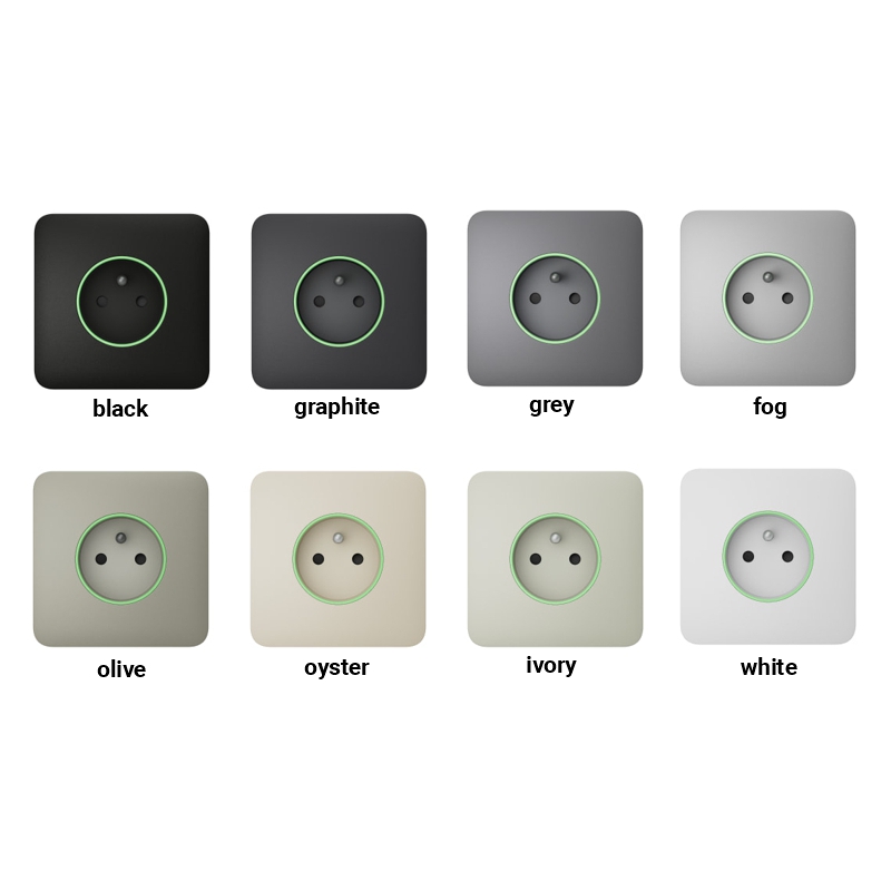 Zásuvky lze používat samostatně nebo je kombinovat s chytrými vypínači LightSwitch a instalovat do rámečku. Přístroje mají stejný design rámečku a barevné odstíny.