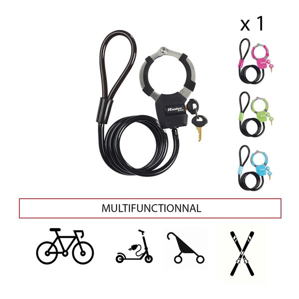 Bezpečnostní pouta s 1 000 mm dlouhým ocelovým lankem zakončeným okem, průměr lanka je 8 mm. Pouta mají speciální cylindrickou vložku s 10 stavítky. ABS a vinylový potah lanka zabraňuje poškrábání laku. 4 ks klíčů jsou součástí balení.