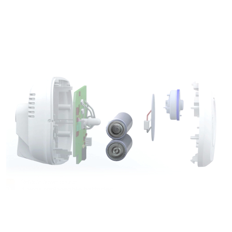Hlásič je napájen dvojicí vyměnitelných alkalických AA baterií 1,5 V zajišťující provoz po dobu až jednoho roku a 5 letou zárukou na zařízení.