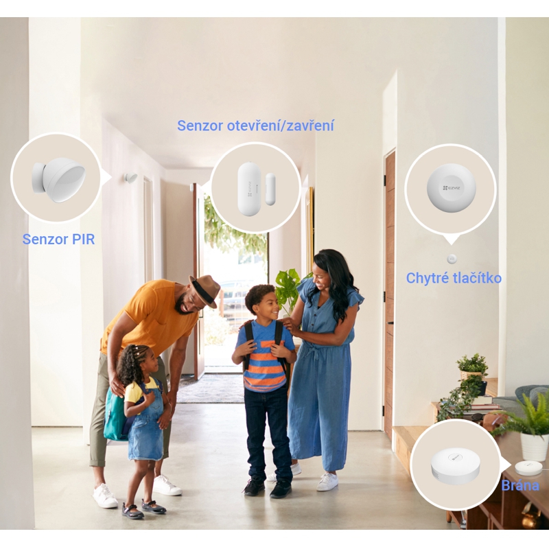 Brána A3 slouží jako centrální základna pro připojená zařízení. Pomocí centrální aplikace EZVIZ můžete spravovat, aktivovat a přijímat oznámení pro všechny připojené snímače. Můžete také zakoupit další čidla a rozšířit tak ochranu.