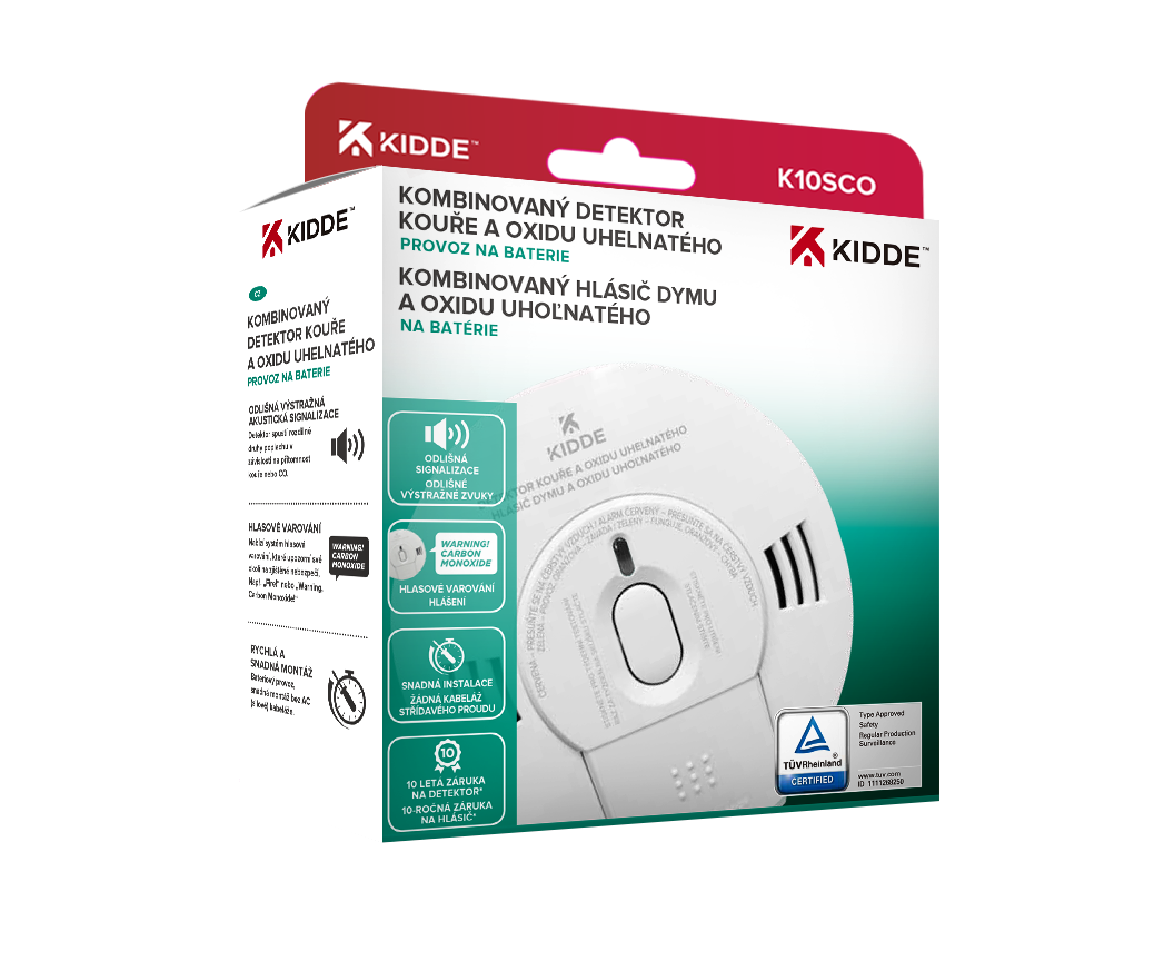 Kombinovaný hlásič požáru a oxidu uhelnatého (CO) – Kidde K10SCO