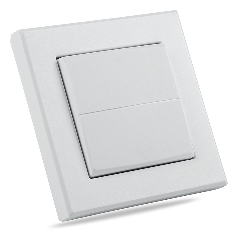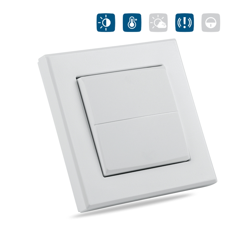 Kryt kolébkového vypínače s rámečkem (HmIP-BRU) pro programovatelné bezdrátové akční členy (HmIP-BRC2, HmIP-BROLL, HmIP-BBL, HmIP-BSM, HmIP-BDT) o velikosti 55 mm je součástí systému chytré domácnosti Homematic IP.