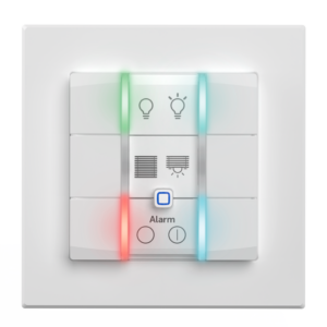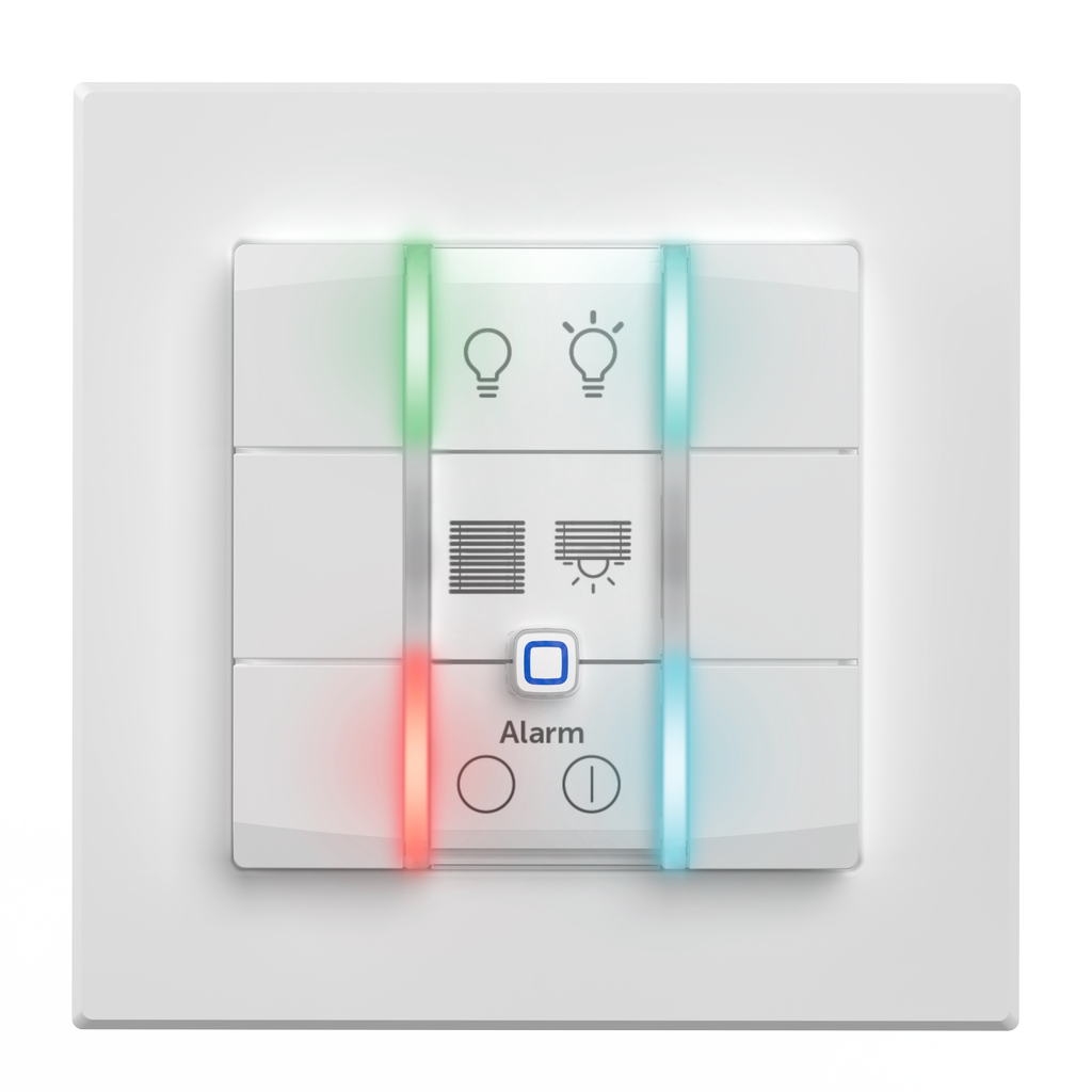 Každé ze 6 tlačítek má vlastní integrovanou multicolor LED diodu, která svítí v 7 různých barvách, bliká nebo pulzuje. Díky nim máte okamžitý vizuální přehled o stavu celé domácnosti – bez nutnosti otevírat aplikaci.