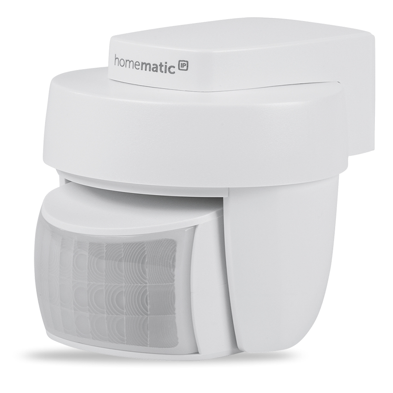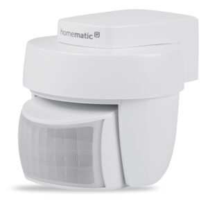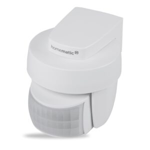 Bezdrátový PIR detektor pohybu se senzorem jasu (HmIP-SMO-2) určený pro venkovní použití je součástí systému chytré domácnosti Homematic IP.