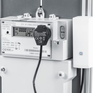 Rozhraní pro chytré elektroměry si na elektroměr jednoduše namontujete sami: Elektronické elektroměry pro domácnosti mají optické datové rozhraní podle normy IEC 62056-21. Kolem tohoto tzv. informačního rozhraní je osazena kovová destička, takže magnetickou čtecí hlavu lze snadno upevnit na místo. Magnetický senzor se na ni jednoduše uchytí. Senzor se pak připojí k rozhraní (vyhodnocovací jednotka) a prostřednictvím aplikace se integruje do vaši instalace – hotovo!
