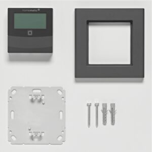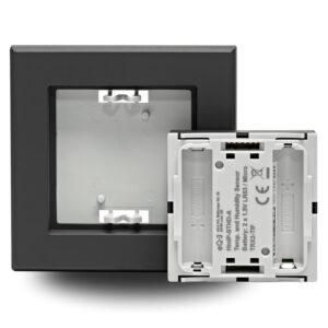 Bezdrátový nástěnný Senzor teploty a vlhkosti v antracitové barvě (HmIP-STHD-A) s LED displejem o velikosti 1,74″ (4,4 cm) pro zobrazení aktuálních informací představuje inteligentní způsob pro regulaci vytápění a úsporu energií.