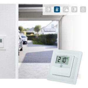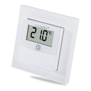 Bezdrátový nástěnný Senzor teploty a vlhkosti (HmIP-STHD) s LED displejem o velikosti 1,74″ (4,4 cm) pro zobrazení aktuálních informací představuje inteligentní způsob pro regulaci vytápění a úsporu energií.