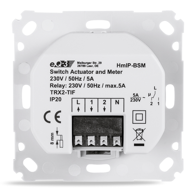 Homematic IP Spínací akční člen s měřením – 5A, zápustná montáž – HmIP-BSM