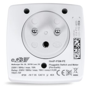 Spínaná bezdrátová zásuvka (HmIP-PSM-PE-2) s funkcí měření umožňuje spínání připojených zařízení. Umožní spínat a vypínat připojené spotřebiče, měřit jejich spotřebu energie, napětí, proud a výkon. Připojená zařízení lze ovládat manuálně přímo tlačítkem na zásuvce nebo vzdáleně v kombinaci s Centrální jednotkou (HmIP-HAP) a mobilní aplikací Homematic IP.