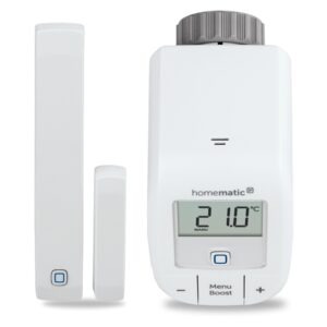Autonomní sada pro inteligentní ovládání vytápění s otevřenou cestou do chytré domácnosti. Startovací sada pro regulaci vytápění (HmIP-SK9) a okamžitou úsporu energií, určená i pro přípravu integrace chytré domácnosti Homematic IP obsahuje dva základní prvky pro manuální řízení prostorové teploty v místnosti a proces vytápění dle individuálních potřeb: Termostatickou hlavici Basic HmIP-eTRV-B a bezdrátový Okenní a dveřní senzor – magnetický HmIP-SWDM, což vede k okamžité úspoře a snížení výdajů na energie až o 30 %.