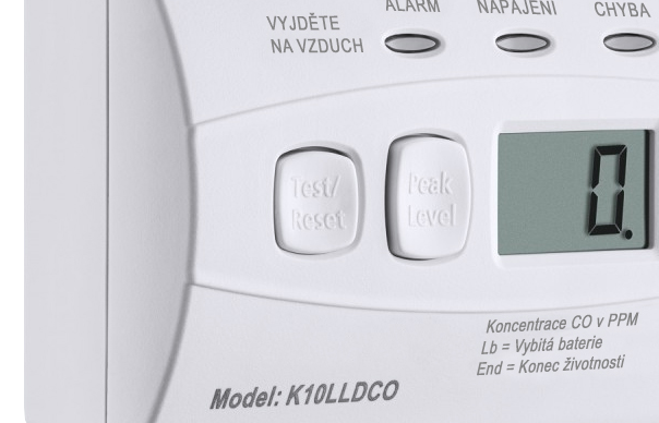 Detektor Kidde K10LLDCO je navíc vybaven funkcí simulačního testu pro rychlou kontrolu správné reakce senzoru CO na testovací plyn.