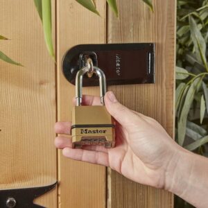 - Visací zámek o šířce 56 mm s tělem ze zinkového odlitku s mosaznou úpravou vysoce odolnou proti korozi.