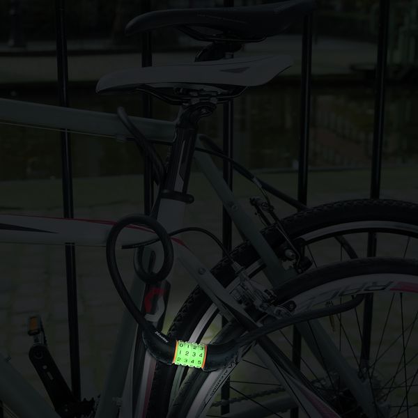 Ocelové lanko o průměru 12 mm a délce 1 800 mm má vinylový potah, který zabraňuje poškrábání laku. Obsahuje integrovaný nastavitelný 4-ciferný kombinační zámek (10 000 možností) a gripy pro snadné uchopení zámku. Pro snadné otevírání v noci navíc obsahuje světélkující ciferníky. Součástí balení je držák pro praktické skladování.