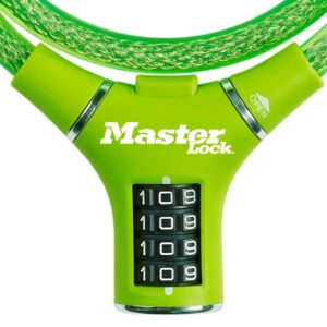 Ocelové lanko o průměru 12mm a délce 0,9m má ergonomický tvar. Jeho vinylový potah zabraňuje poškrábání. Obsahuje integrovaný nastavitelný 4-ciferný kombinační zámek.