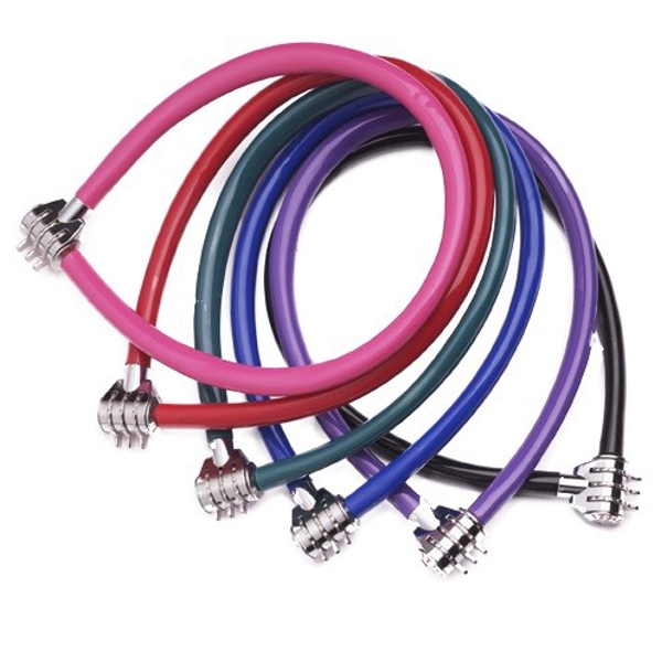 Ocelové kroucené kombinační lanko o délce 55cm a průměru 6mm má vinylový potah, který zabraňuje poškrábání. Obsahuje pevnou kombinaci 3 číslic. Barva černá. Cena za kus.