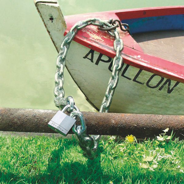 Řetěz s hranatými oky z kalené oceli o délce 0,6 m. Transparentní vinylový obal chránící řetěz proti korozi a mechanickému poškození. Vysoká odolnost proti přeřezání. Vhodné pro visací zámky Master Lock™.
