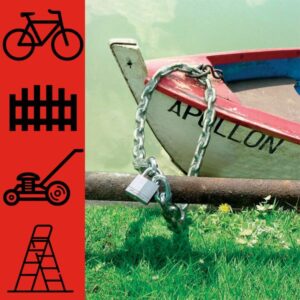 Řetěz s hranatými oky z kalené oceli o délce 1,5 m. Transparentní vinylový obal chránící řetěz proti korozi a mechanickému poškození. Vysoká odolnost proti přeřezání. Vhodné pro visací zámky Master Lock™.