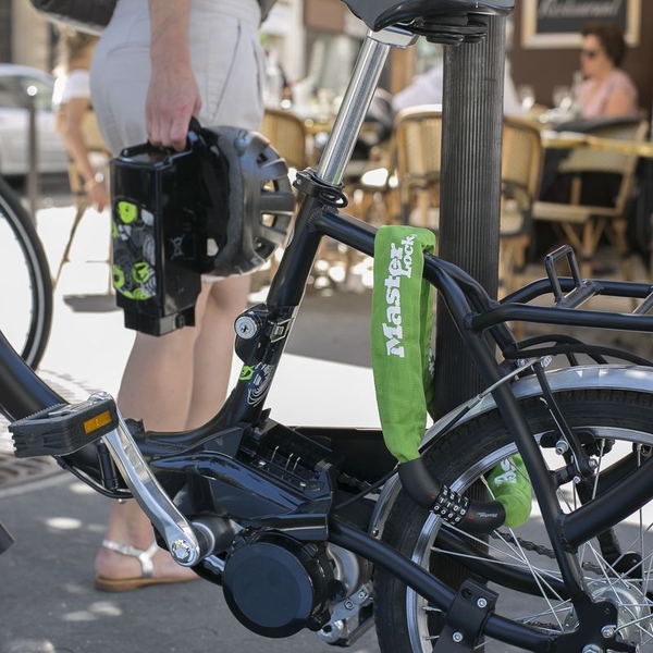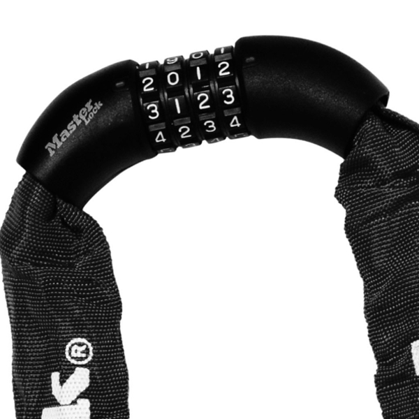 Zpevněný ocelový řetěz s integrovaným kombinovaným zámkem je 90 cm dlouhý a obsahuje ocelové spojky o průměru 8 mm, které odolávají řezání. Nylonový kryt řetězu zabraňuje poškrábání. Zámek obsahuje resetovatelnou kombinaci 4 číslic.