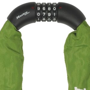 Zpevněný ocelový řetěz s integrovaným kombinovaným zámkem je 90 cm dlouhý a obsahuje ocelové spojky o průměru 8 mm, které odolávají řezání. Nylonový kryt řetězu zabraňuje poškrábání. Zámek obsahuje resetovatelnou kombinaci 4 číslic.