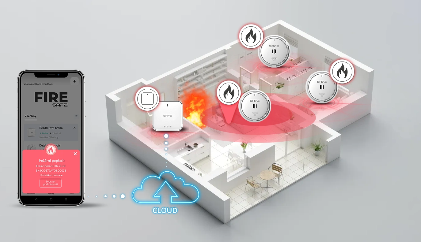 - Bezpečí 24/7: kouř a požár je detekován včas, aby byla možná rychlá reakce.