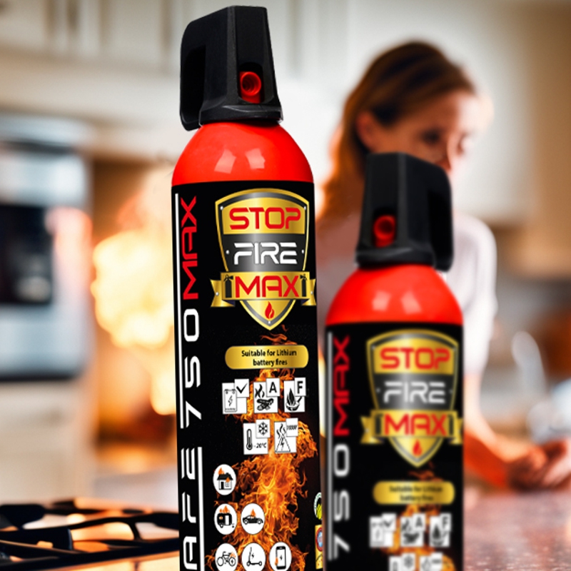 SAFE 750 MAX však nabízí mnohem více. Je jedním z mála hasicích prostředků na trhu, který dokáže účinně hasit i začínající požáry lithiových baterií. Tyto baterie jsou dnes běžnou součástí mnoha produktů, jako jsou vysavače, elektrokola, elektrokoloběžky, drony, telefony, počítače a další elektronická zařízení.