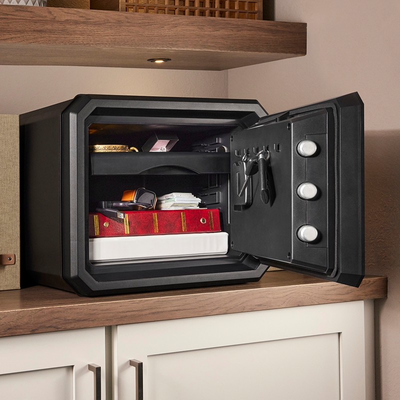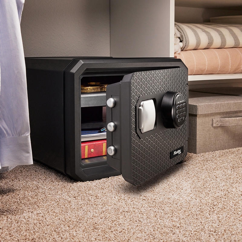 Ohnivzdorný a voděodolný bezpečnostní trezor Master Lock velikosti L kombinuje to nejlepší ze zkušeností společnosti Master Lock v oblasti zabezpečení s odbornými znalostmi společnosti Sentry Safe v oblasti ochrany proti požáru a povodním. Chrání nejcennější předměty – šperky, peníze, elektroniku, papírové dokumenty (formát A4), média a další rodinné památky – před krádeží, požárem a povodněmi. Díky 3 velkým automatickým ocelovým závorám (o 60 % širším než u trezoru verage), pantům odolným proti roztržení a elektronickému motorizovanému zámku je vysoce odolný proti napadení. Jeho speciální patentovaná konstrukce zaručuje 1hodinovou ochranu proti požáru a 24hodinovou ochranu proti zaplavení.