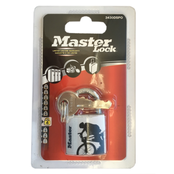 Visací zámek 3430EURDSPO pro všeobecnou ochranu z pevného hliníku o šířce 30 mm. Hliníkové tělo zámku s potahem odolné proti poškození a korozi. Třmen z oceli o průměru 5 mm odolný proti přeřezání. Nabízíme ve 4 možných variantách se sportovním potiskem.