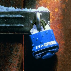 Odolný visací zámek 312EURD o šířce 40 mm s termoplastickým krytím.