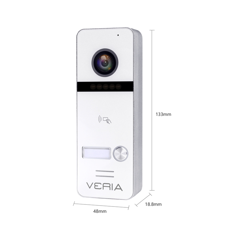 Vstupní kamerová jednotka VERIA 301 je vhodná k propojení s monitory VERIA řady 3xxx. Kamerová jednotka snímá obraz ve Full HD rozlišení, pro noční přísvit používá IR LED diody a pro kvalitní obraz IR Cut filtr. Vstupní stanice disponuje vestavěnou čtečkou RFID čipů 13,56 MHz. Propojení mezi monitorem a vstupní stanicí je 4-vodičové.