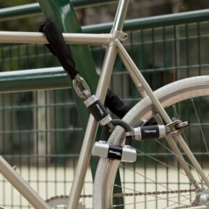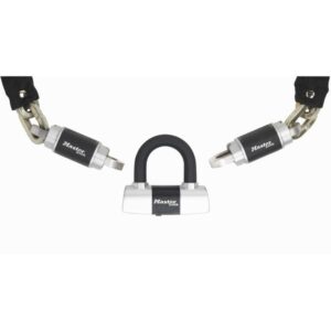 Řetěz z kalené oceli s oky s čtvercovým profilem o O 10 mm má třmen z kalené oceli s osmiúhelníkovým profilem o O 16 mm. Nylonový potah řetězu zabraňuje poškrábání laku. Obsahuje diskovou cylindrickou vložku se 7 stavítky odolnou proti vyhmatání a dvojitou západku odolnou proti vypáčení. Krytka klíčové dírky navíc zabraňuje vniknutí nečistot. Hmotnost řetězu je 2,74 kg.